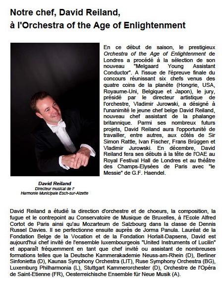 (Orchestra of the Age of Enlightenment). Depuis le 1ier janvier 2011, David Reiland est